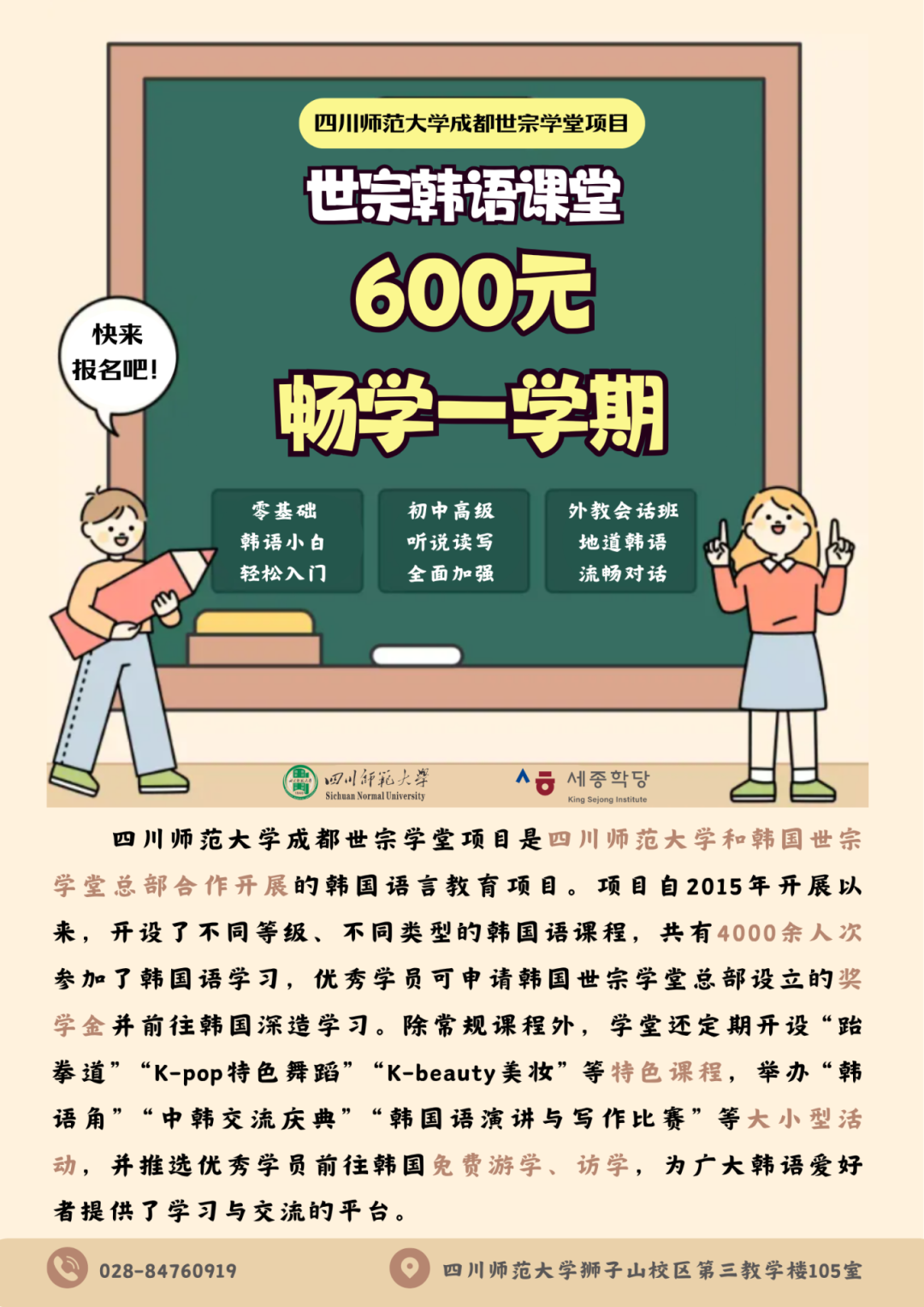 2.学费不包含教材费。教材为新世宗韩语,自购时请注意甄别。