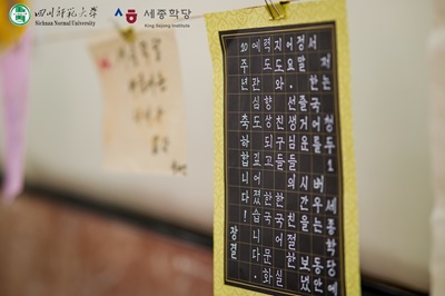 本次比赛作为学堂成立十周年系列活动的主要组成部分,同时也是四川师范大学2025年国际教育交流月的重要一环。除韩国语歌曲大赛外,现场还设有成都世宗学堂十周年宣传展,全方位展示学堂十年来的发展历程与成就。同时还将韩语书法征集活动的优秀作品进行了展示,到场观众纷纷驻足观看。
