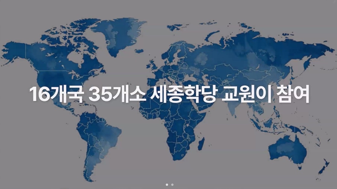本次世宗学堂在职教师培训为期四个月,共吸引来自全球16个国家与地区35所世宗学堂的70位韩语教师参与。培训内容包括线上课程学习,组别教案培训、发音指导、课程设计指导、特别讲座和文化课程等板块。