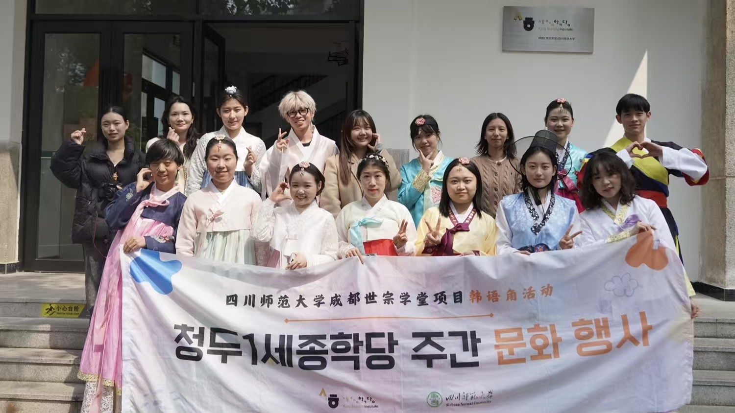 2026年3月21日,四川师范大学成都世宗学堂项目在狮子山校区第四教学楼815教室成功举办第十五期韩语角活动。本次活动特邀外教吴舒娜老师进行讲解,通过韩服试穿体验,让学员们亲身感受韩国服饰的优雅与韵味。
